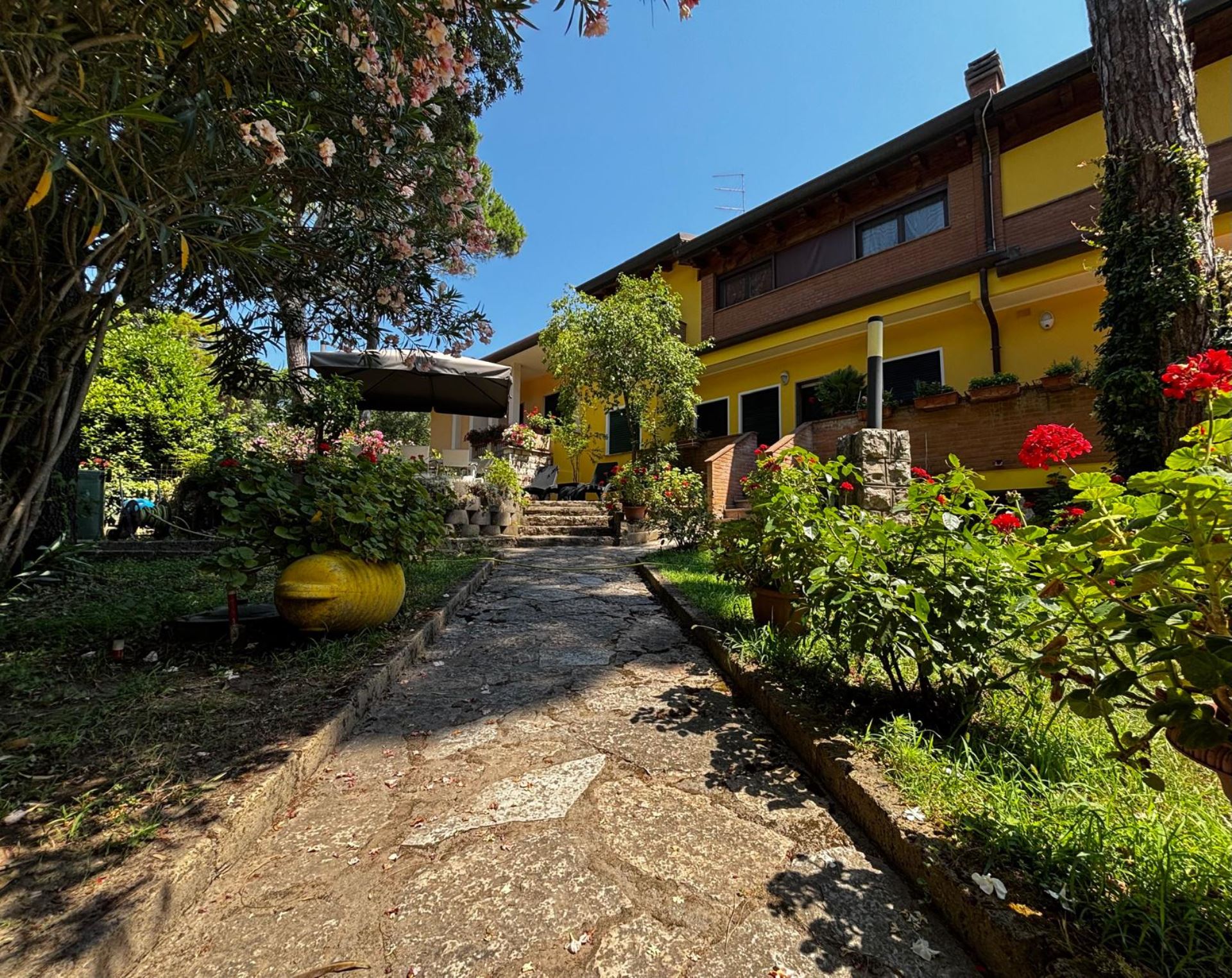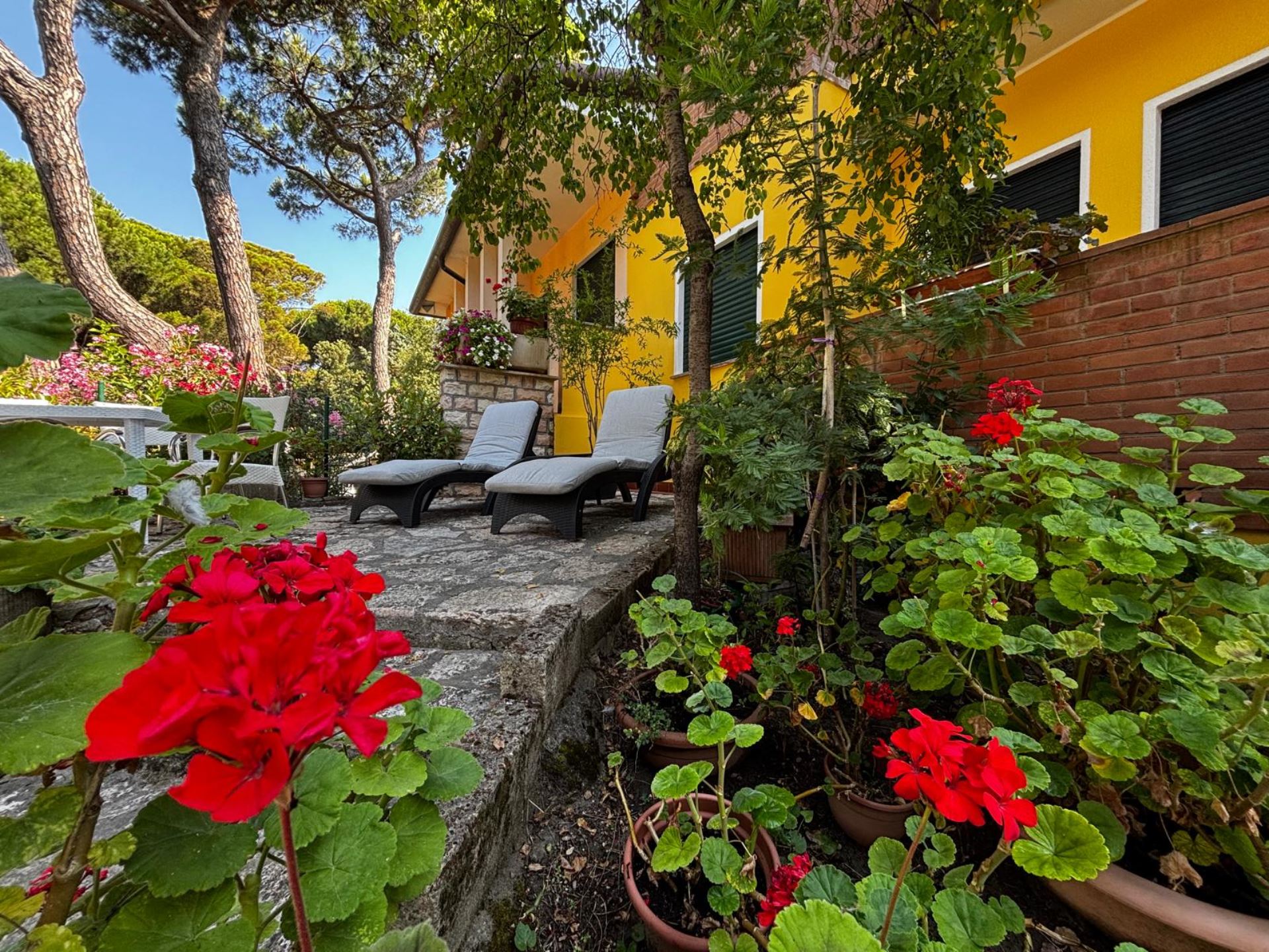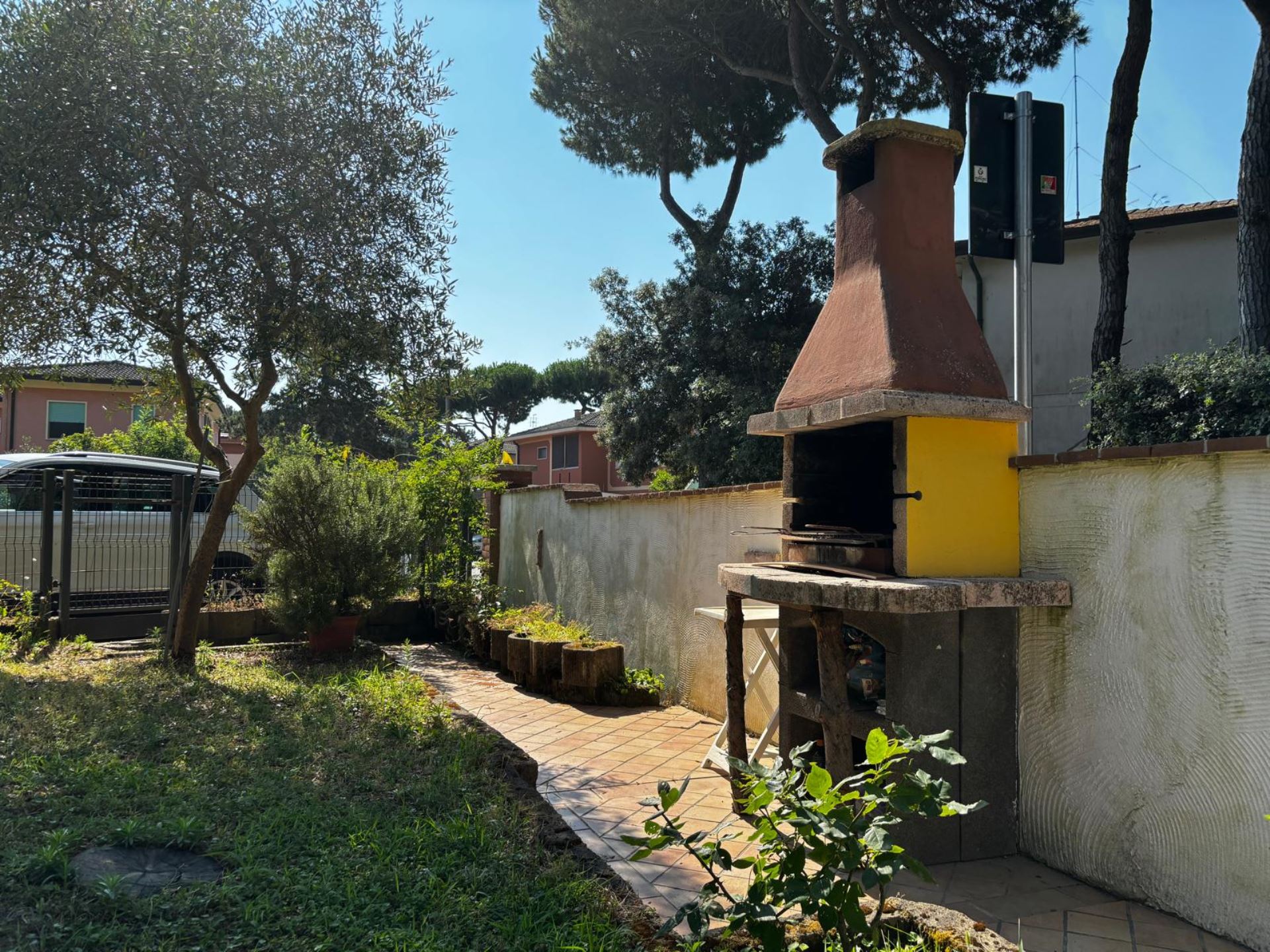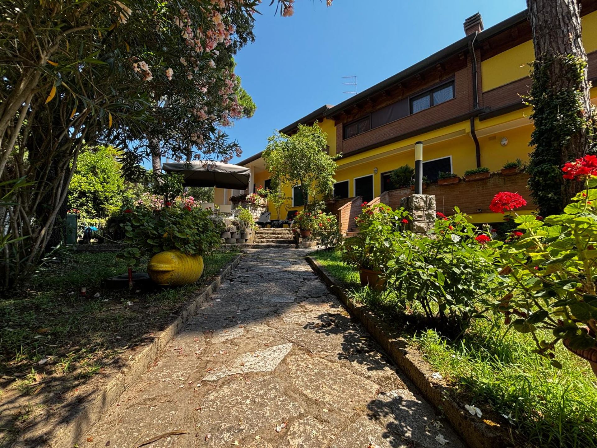 Elegant Villa Portion with Private Garden – Comfort, Space & Relaxation Just 150 m from the Beach. Located just 150 meters from both the beach and the center (Piazza San Giorgio), this beautiful villa portion offers a peaceful setting surrounded by greenery. The property features a large 300 m² private garden with a furnished patio, barbecue, and outdoor dining area—perfect for relaxing moments in the open air. Inside, it includes two spacious bedrooms, each with a double bed and a single bed, an open-plan living room with a fully equipped kitchen and sofa, two modern bathrooms with showers, and two balconies. Amenities include satellite TV, Wi-Fi, air conditioning, washing machine, dishwasher, mosquito screens, microwave, electric kettle, iron with ironing board, hairdryer, and private parking. Ideal for families or small groups (up to 6 guests) seeking a stylish and comfortable seaside holiday. Energy class F – EPgl,nren 209.57 kWh/m² per year