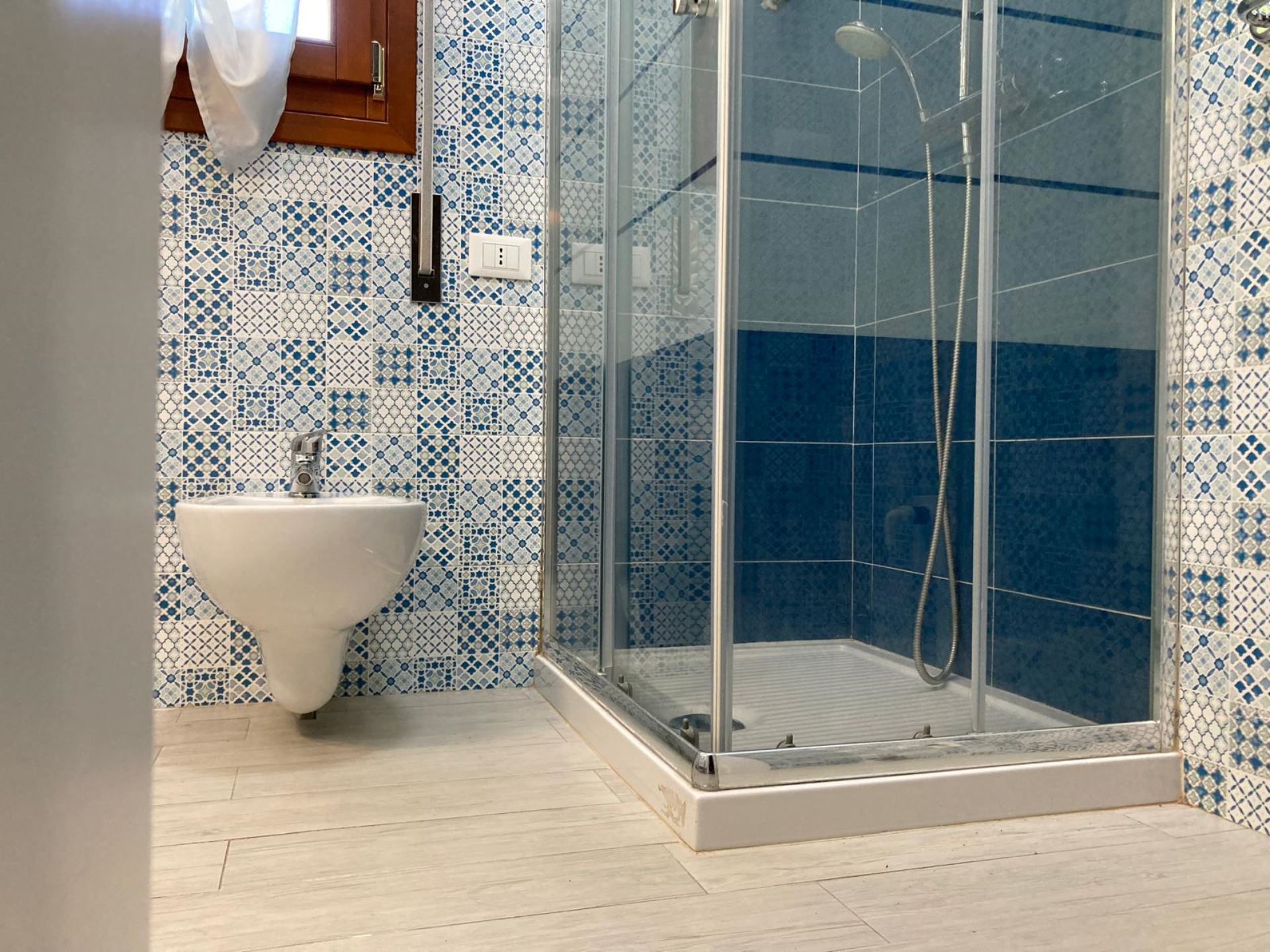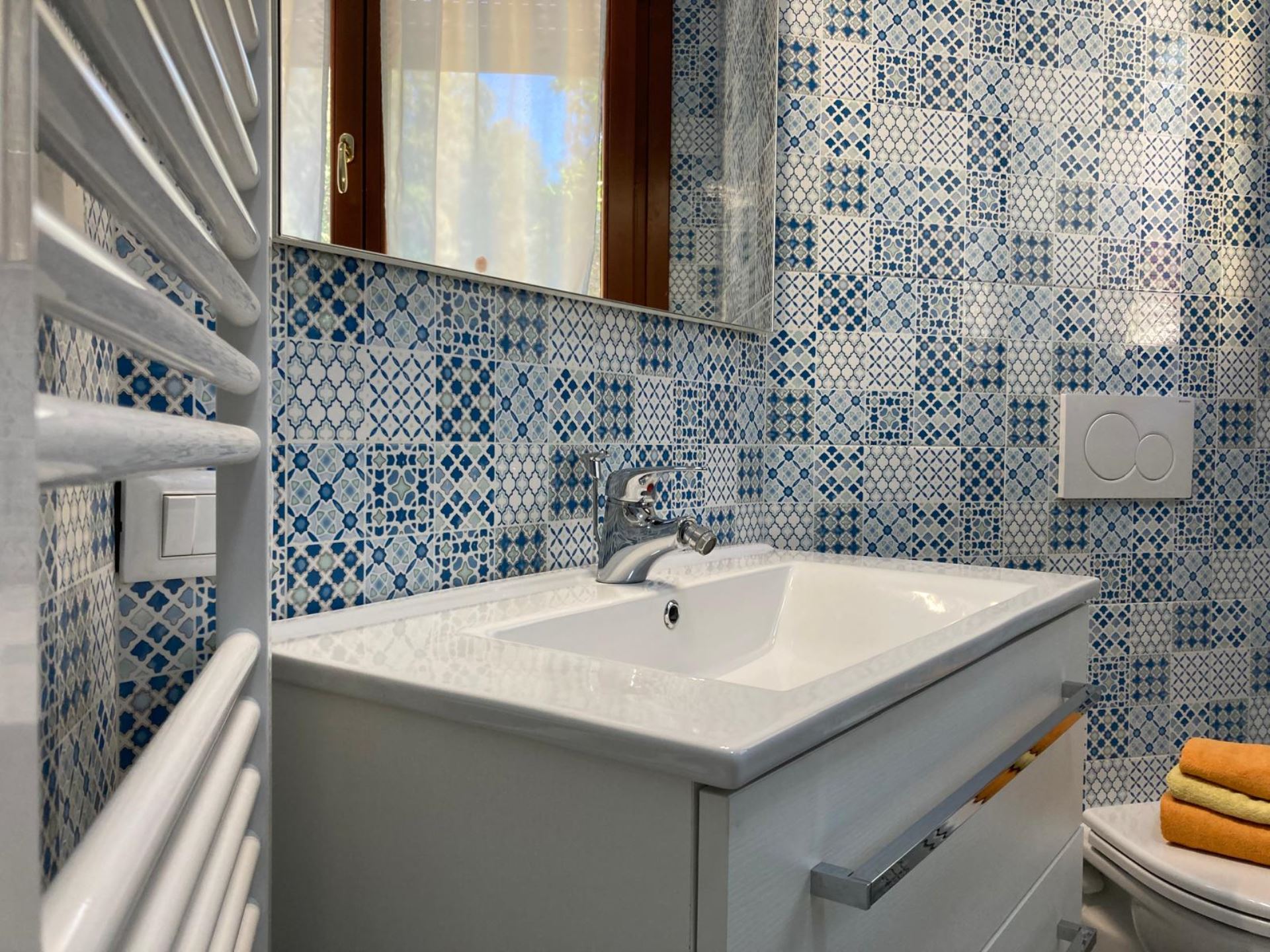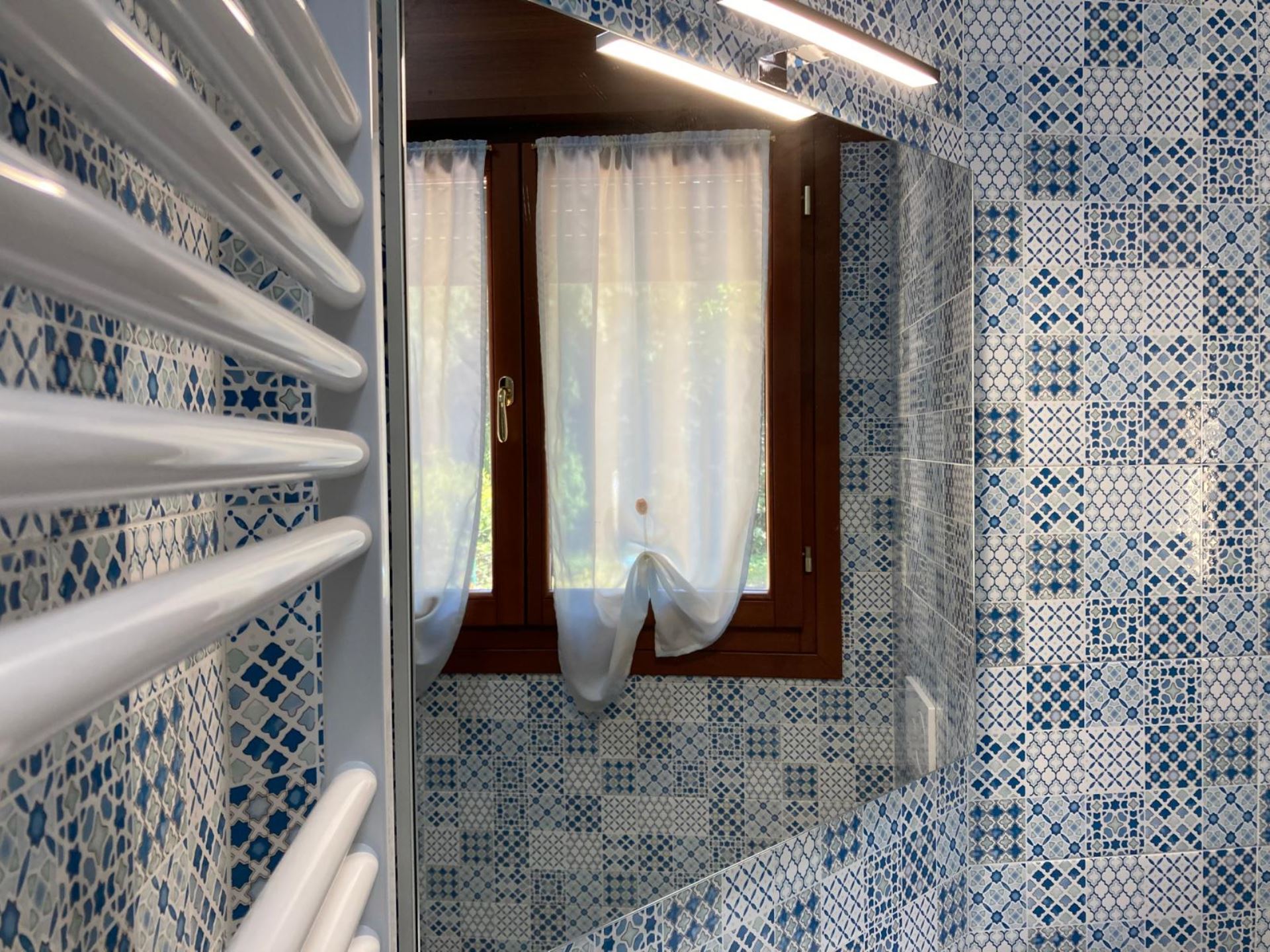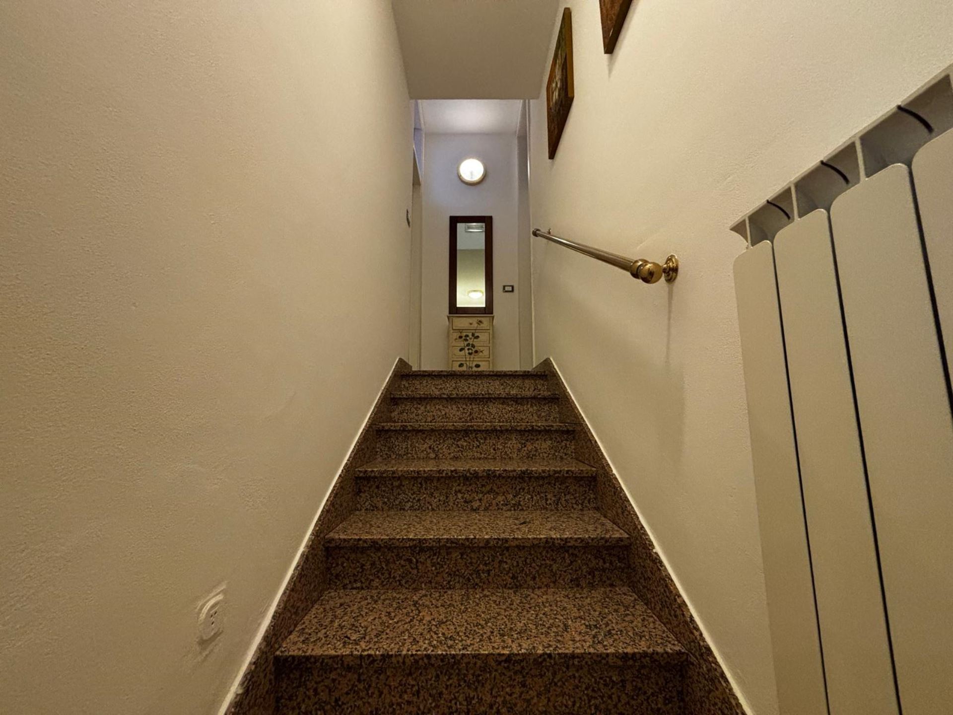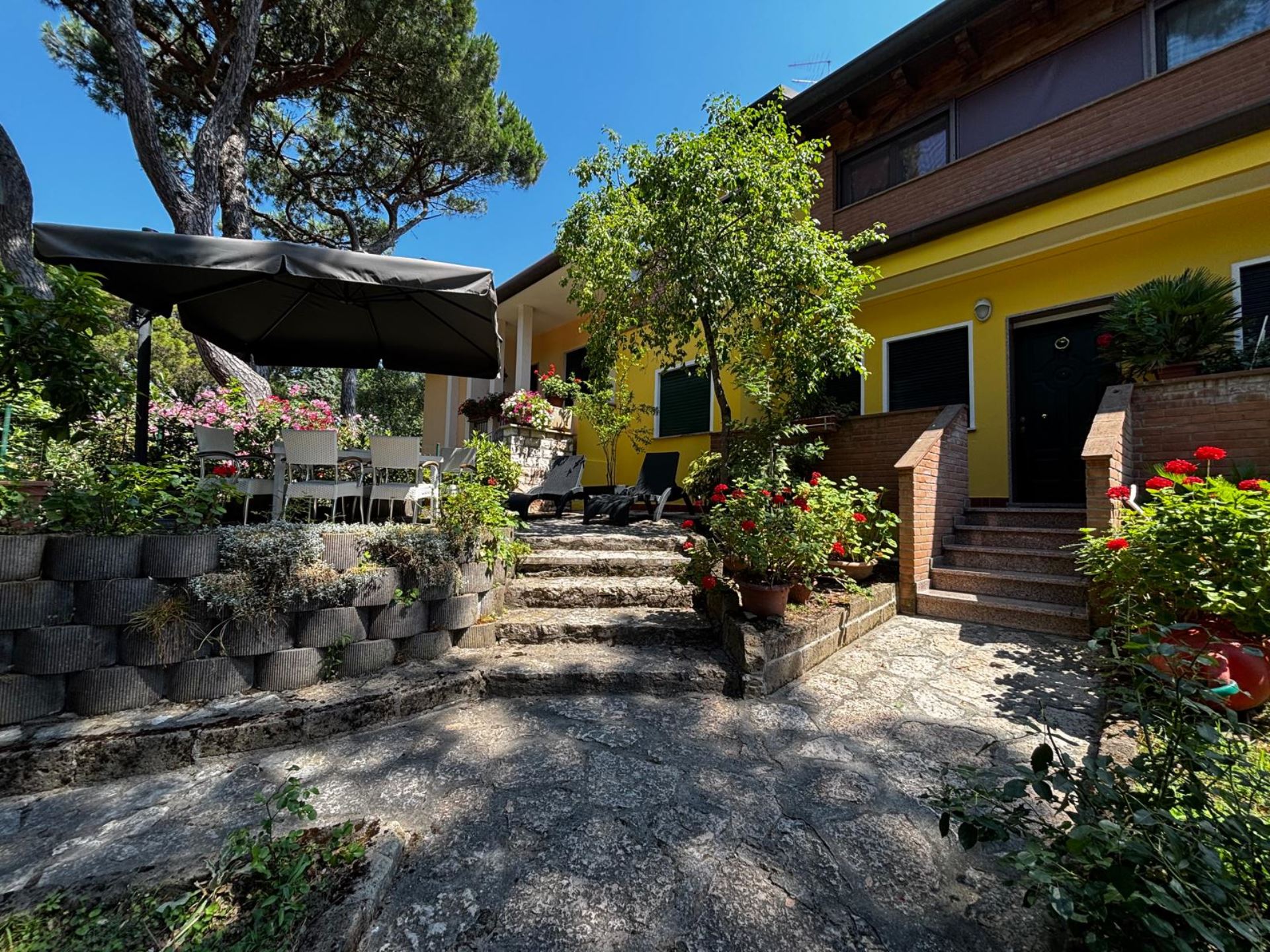 Elegant Villa Portion with Private Garden – Comfort, Space & Relaxation Just 150 m from the Beach. Located just 150 meters from both the beach and the center (Piazza San Giorgio), this beautiful villa portion offers a peaceful setting surrounded by greenery. The property features a large 300 m² private garden with a furnished patio, barbecue, and outdoor dining area—perfect for relaxing moments in the open air. Inside, it includes two spacious bedrooms, each with a double bed and a single bed, an open-plan living room with a fully equipped kitchen and sofa, two modern bathrooms with showers, and two balconies. Amenities include satellite TV, Wi-Fi, air conditioning, washing machine, dishwasher, mosquito screens, microwave, electric kettle, iron with ironing board, hairdryer, and private parking. Ideal for families or small groups (up to 6 guests) seeking a stylish and comfortable seaside holiday. Energy class F – EPgl,nren 209.57 kWh/m² per year